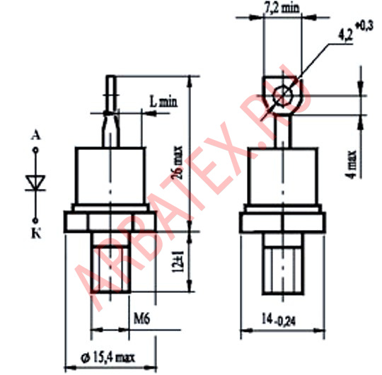 У диодов прямой полярности анодом является корпус, обратной полярности - жесткий вывод.