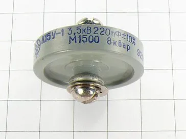 К15У-1 3,5кВ 220 пф М1500 8квар конденсатор высоковольтный керамический постоянной ёмкости. Конденсатор универсального применения предназначен для эксплуатации в непрерывном высокочастотном и импульсном режиме или в цепях постоянного тока.